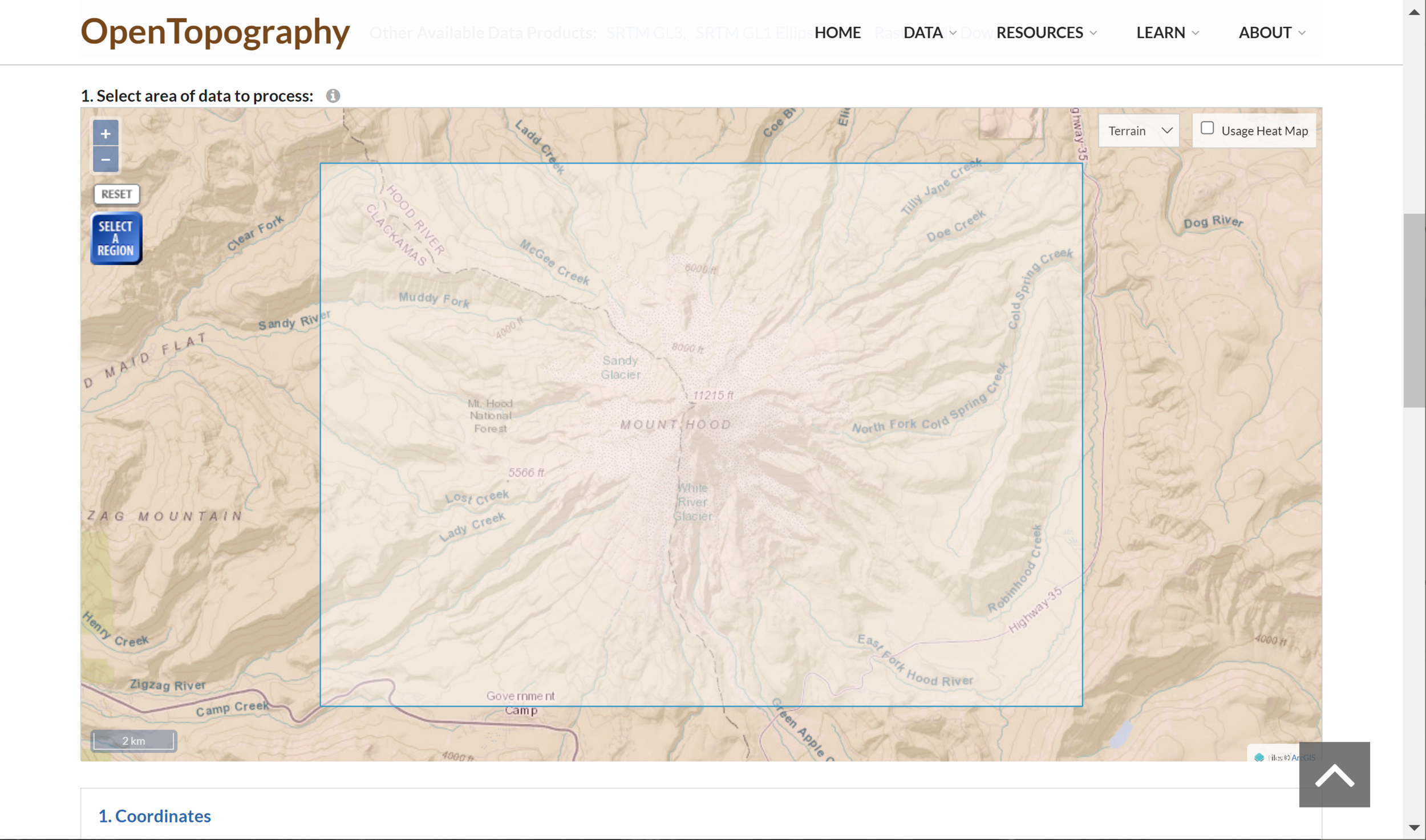 This option requires you to have an Earth Explorer account to download data. It’s not quite as easy to use as some of the other options, but it allows you to download other types of datasets as well as being able to upload a shapefile or KML for your AOI. It also offers download options as Geotif, BIL, DTED formats.