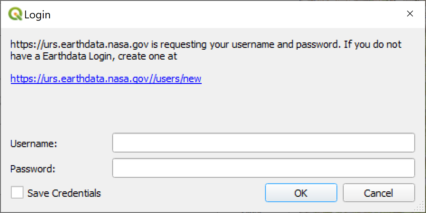 After you click the Download button, another window should pop up asking you for your Earth Data account login