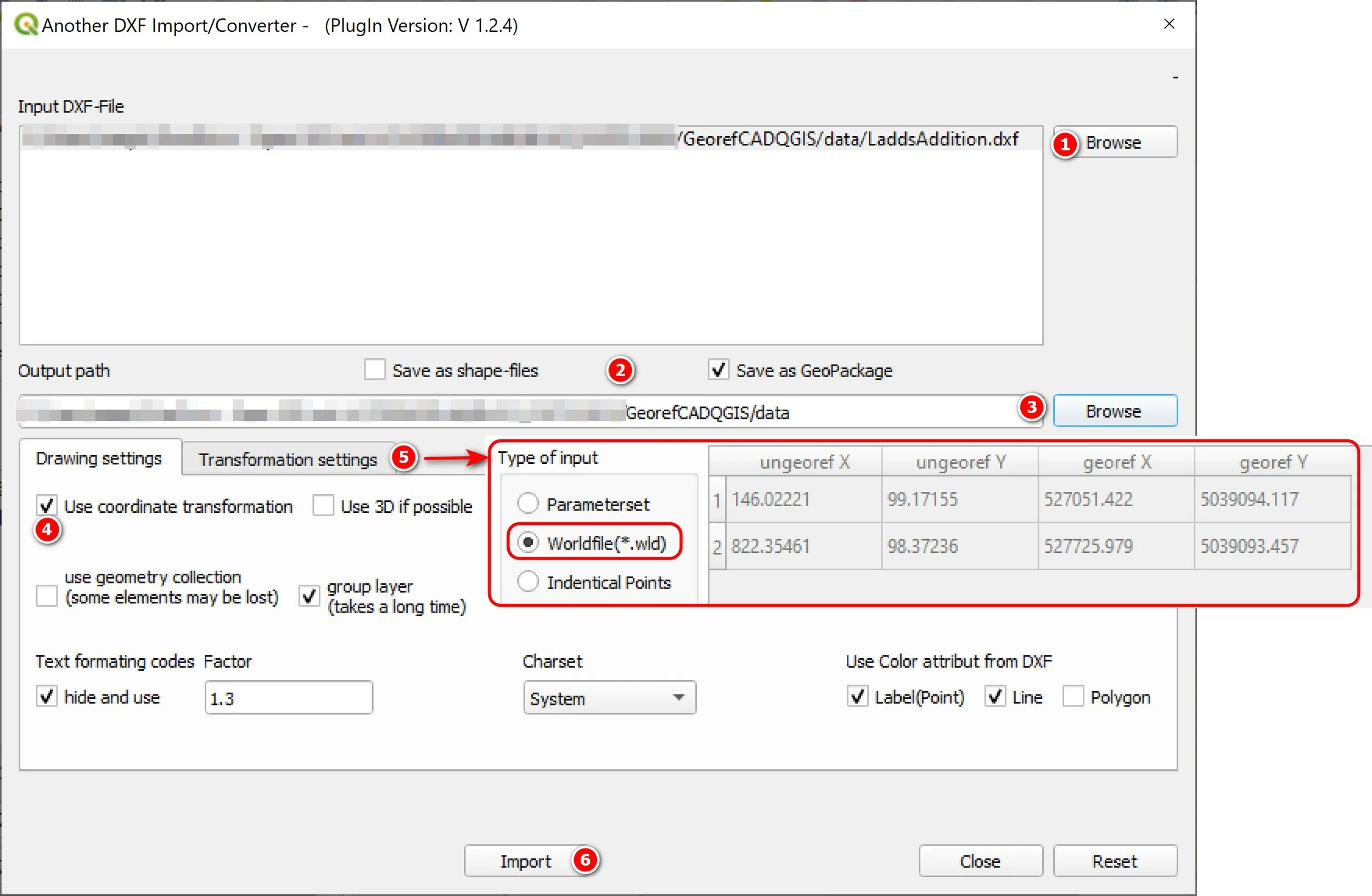 For this option, use Another DXF Importer plugin to transform the DXF using the world file you created in the above step. I find this option easier. Go to Vector menu >> DXF Import/Convert >> Import or Convert.