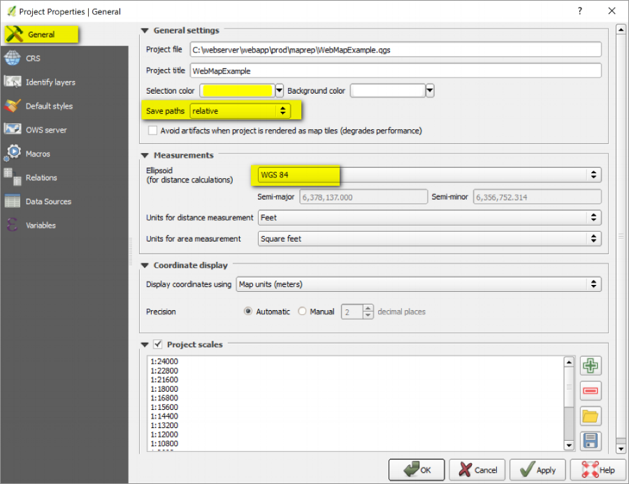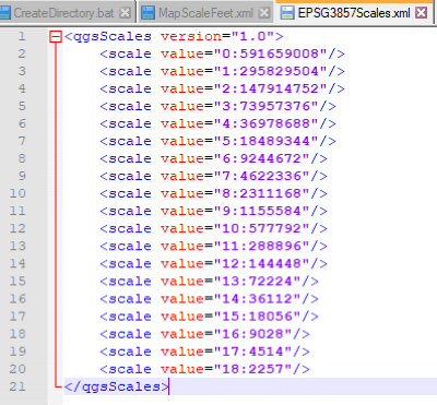 Note: For Project Scales you can enter manually or write them out into an *.xml file so it can be used for other projects. So example, here is my map scales in feet and as EPSG3857 (e.g. similar to Google Maps)