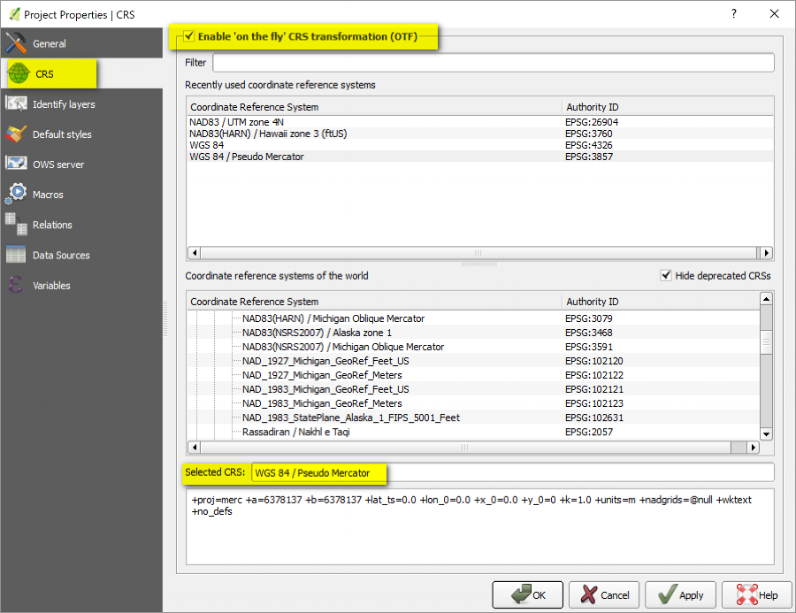 2. Configure QGIS project properties. Go to File menu >> Project Properties