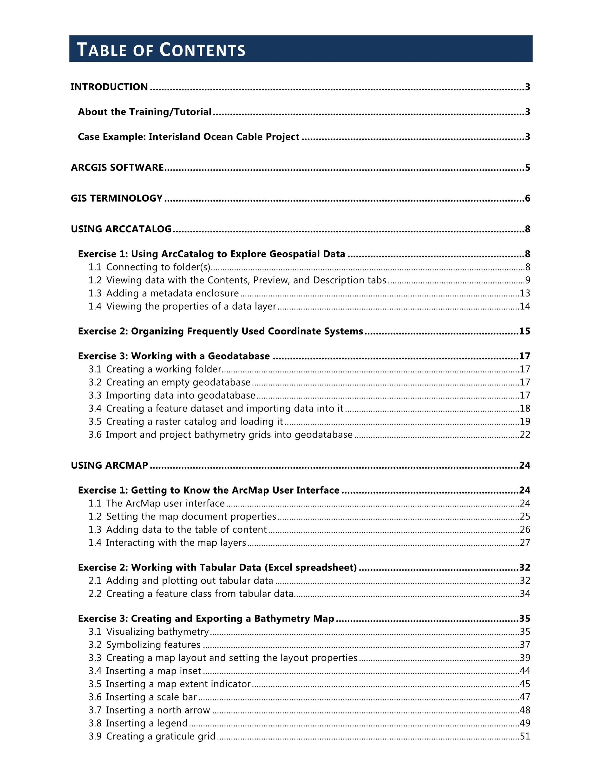 Below is a synopsis taken from the GIS manual and a preview of the Table of Contents so you can see what the training was all about. You can also download the GIS4DAR Training Manual - Please be patient. The pdf file is about 100 pages and is ~6 MB. The data for the training is really large (~1 GB) so I'm still trying to figure what is the best way to post it for downloading. But in the meantime if you would like it - please email me directly.